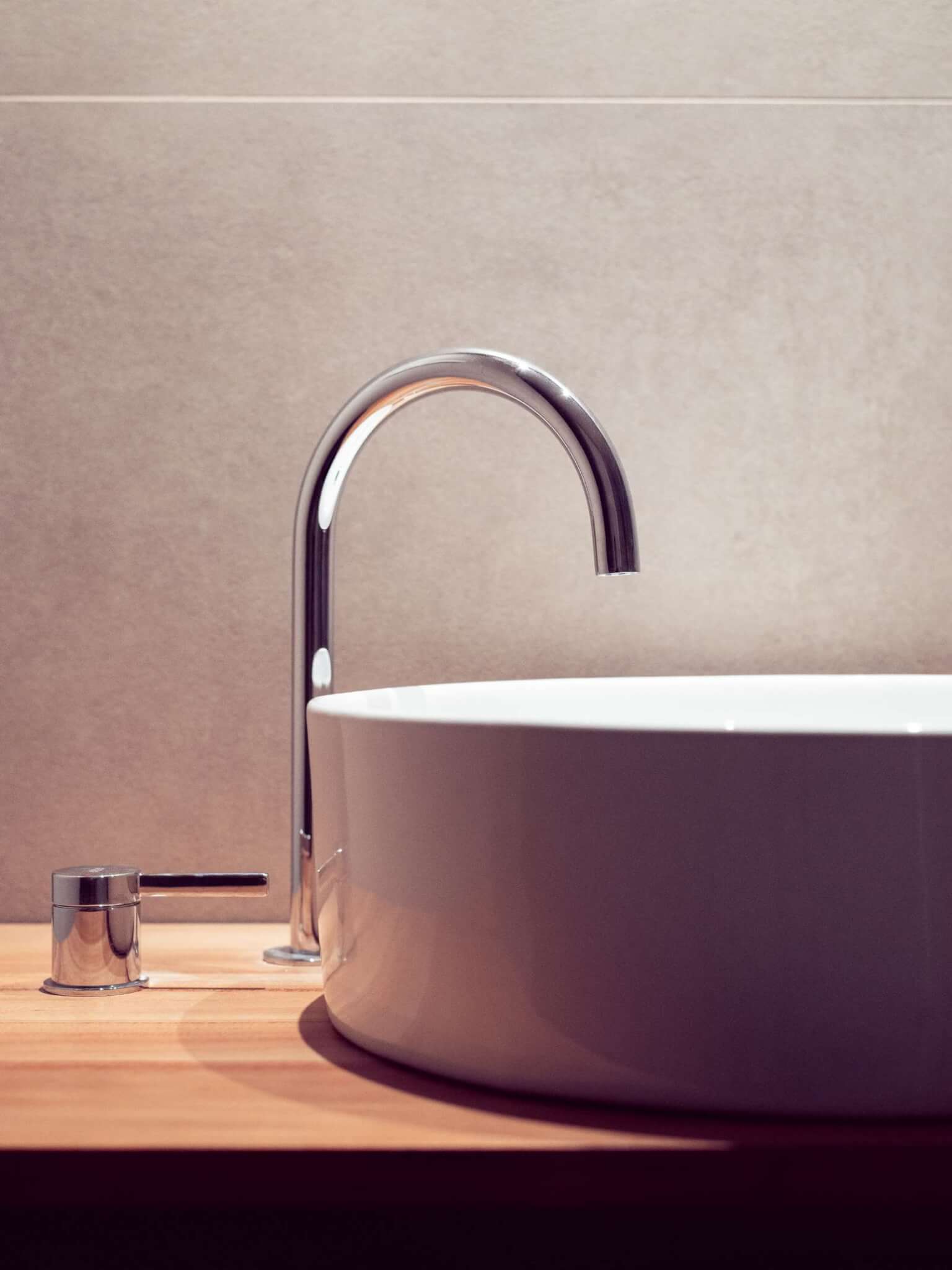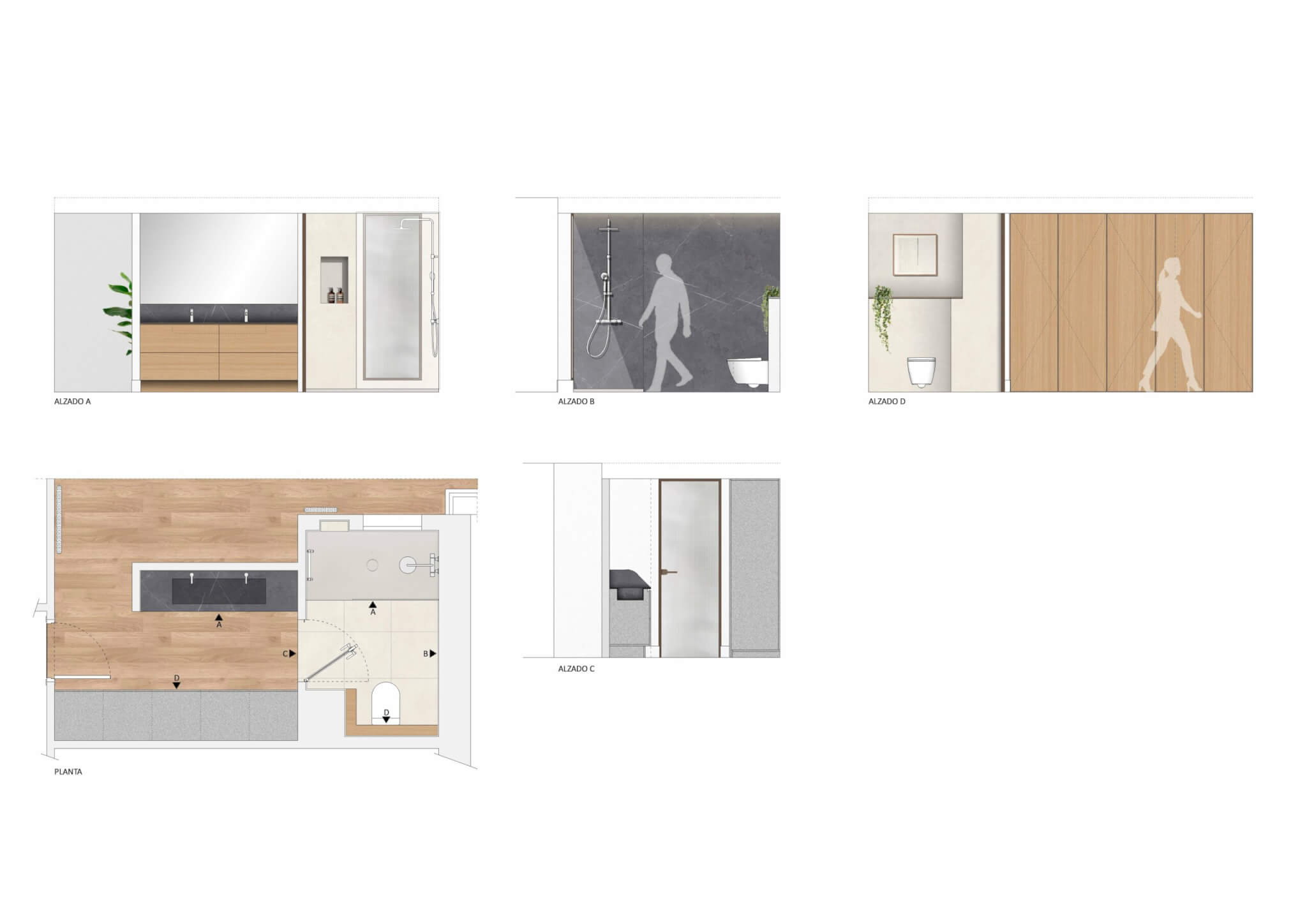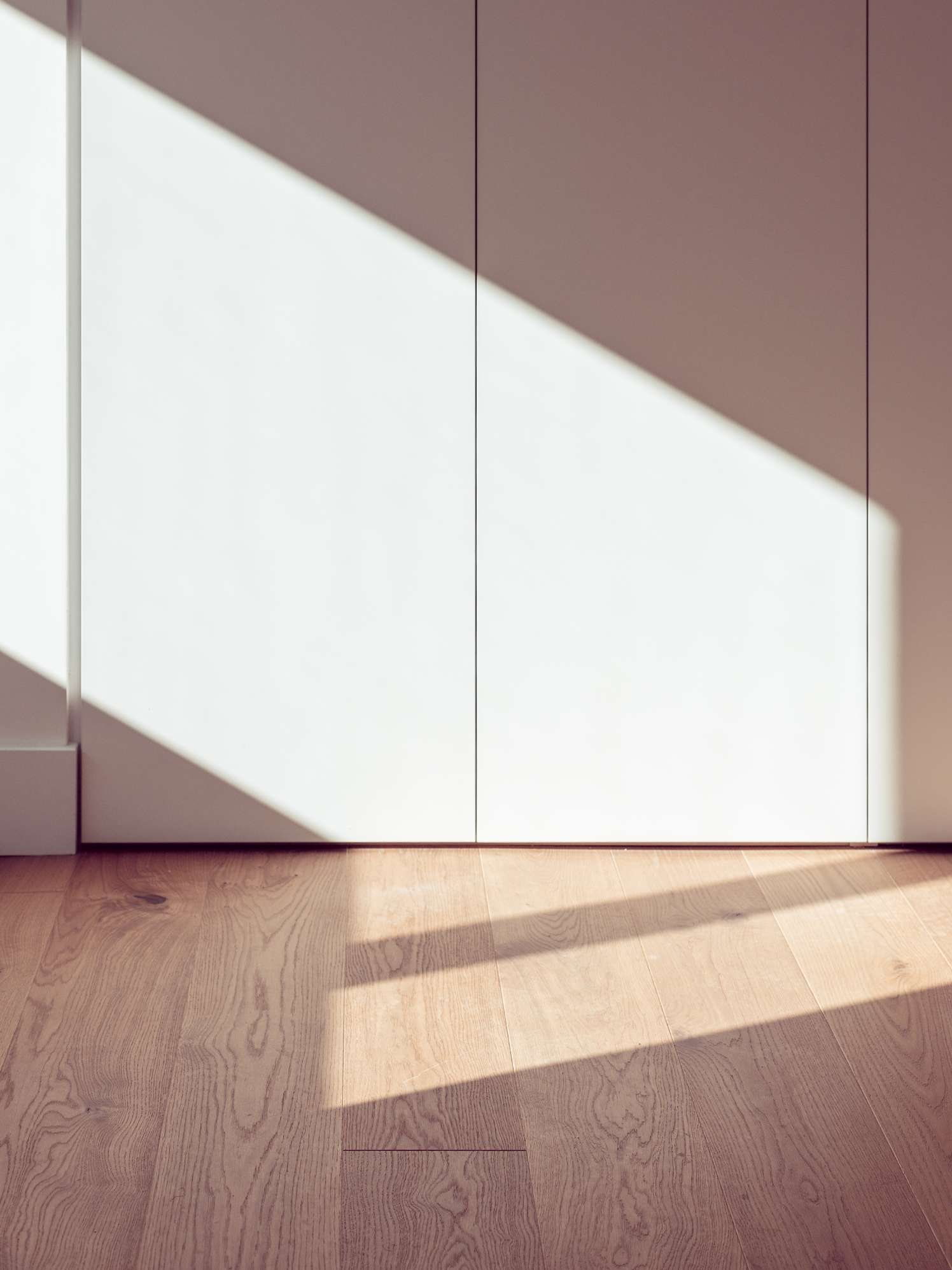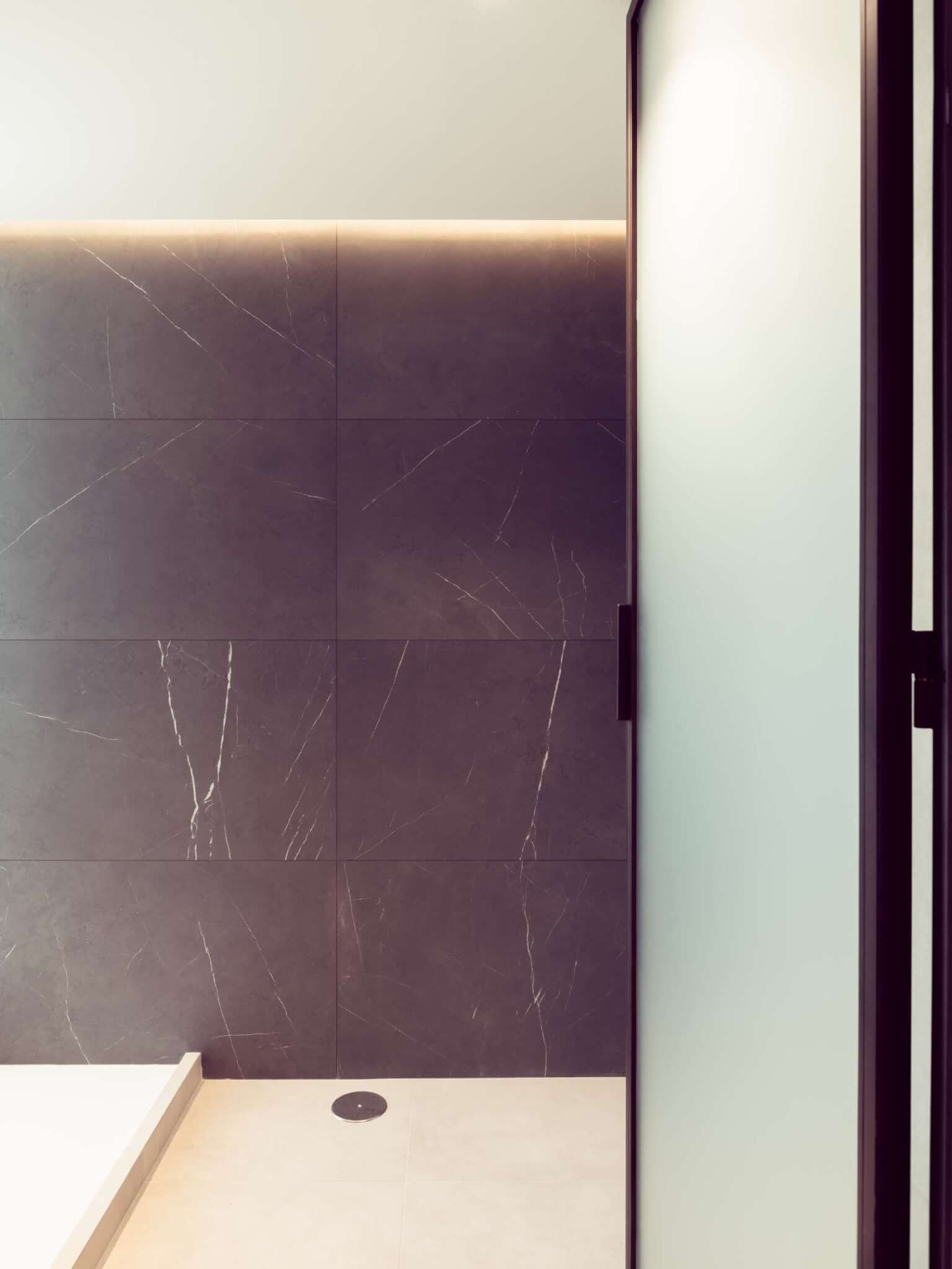 The aesthetic is inspired by Nordic design, where warmth and simplicity are combined with a carefully curated selection of materials. Wooden flooring takes center stage, providing continuity throughout the home. This design language is complemented by the use of sandy-toned porcelain tiles in the bathrooms and kitchens, which act as a counterpoint, adding texture and a natural feel. The materiality is further enhanced by warm finishes in the kitchen and bathroom furnishings, harmonizing the overall design and balancing the interior composition.